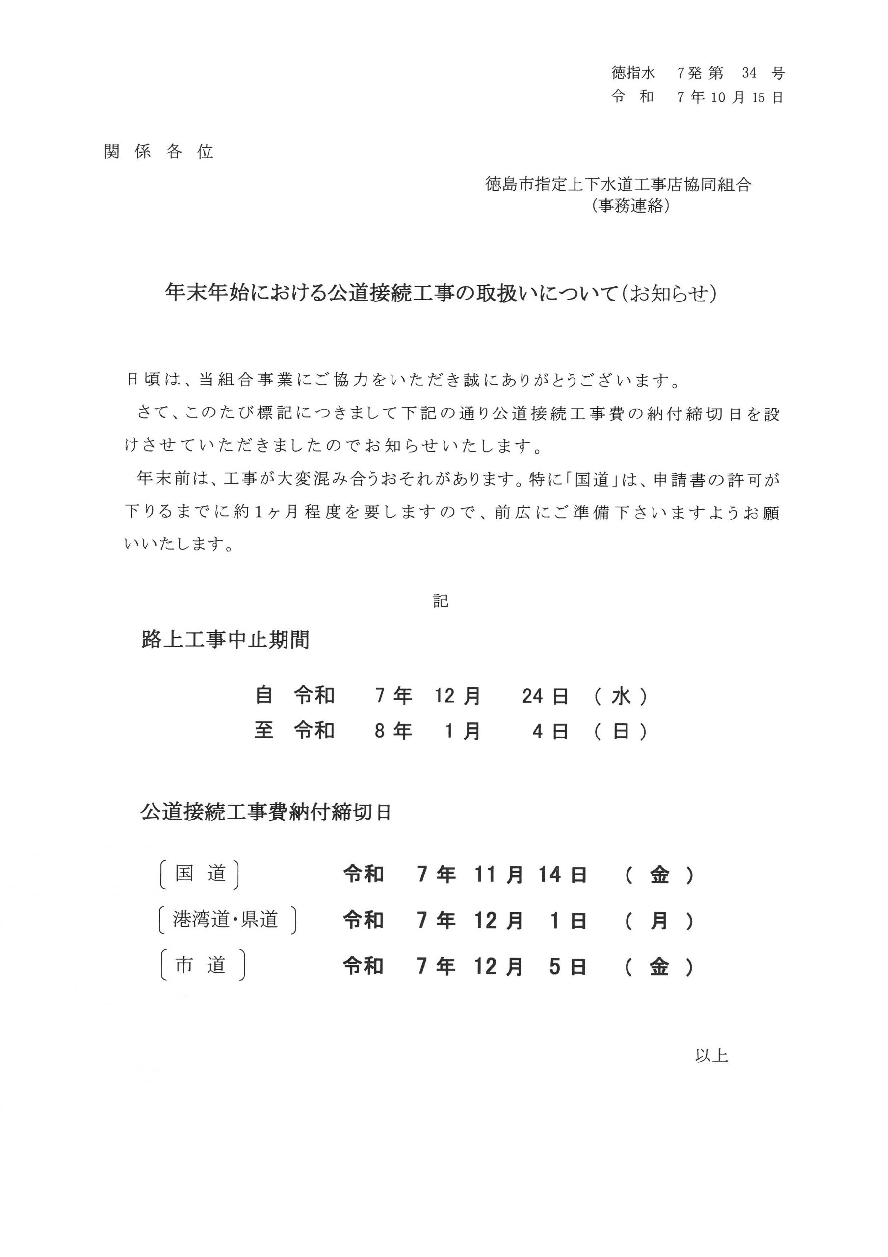 年末年始における公道接続工事の取扱いについて(お知らせ)